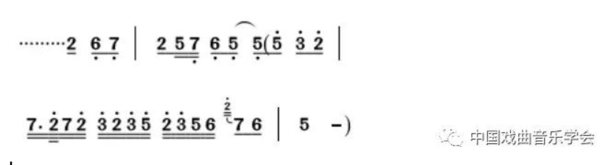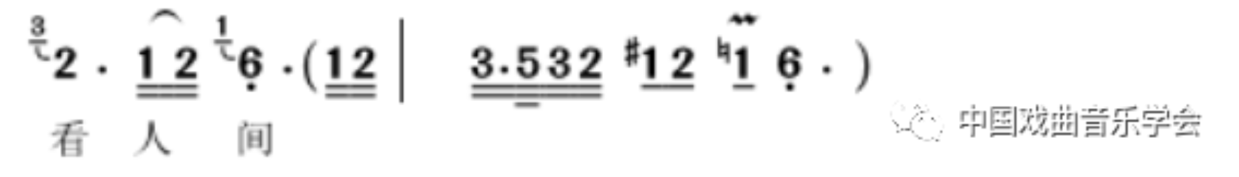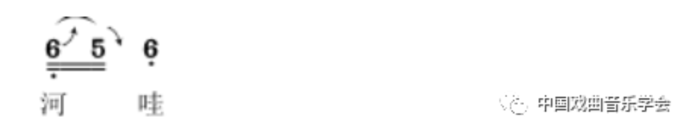 上下小七度滑音,略带夸张,增强了唱腔的戏剧效果。类似的处理有几处。