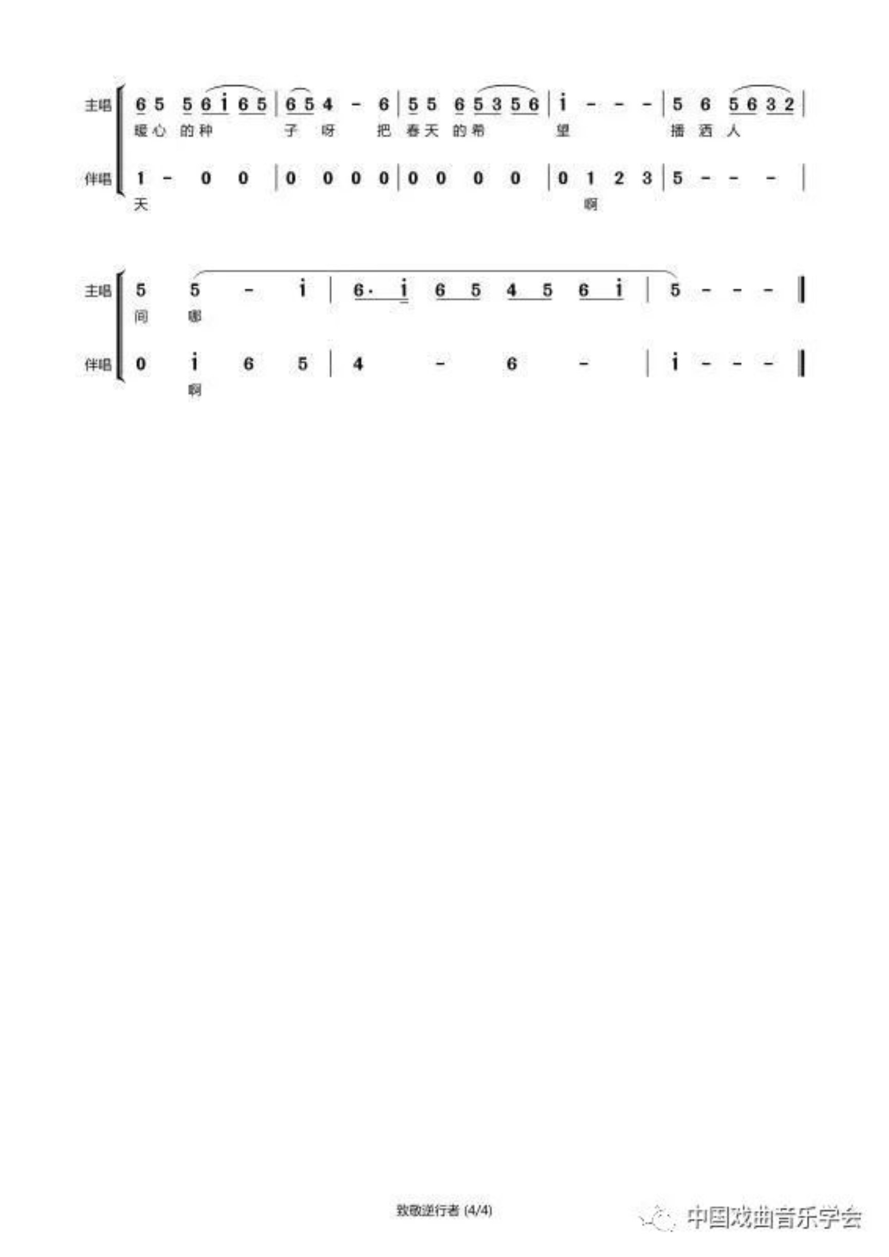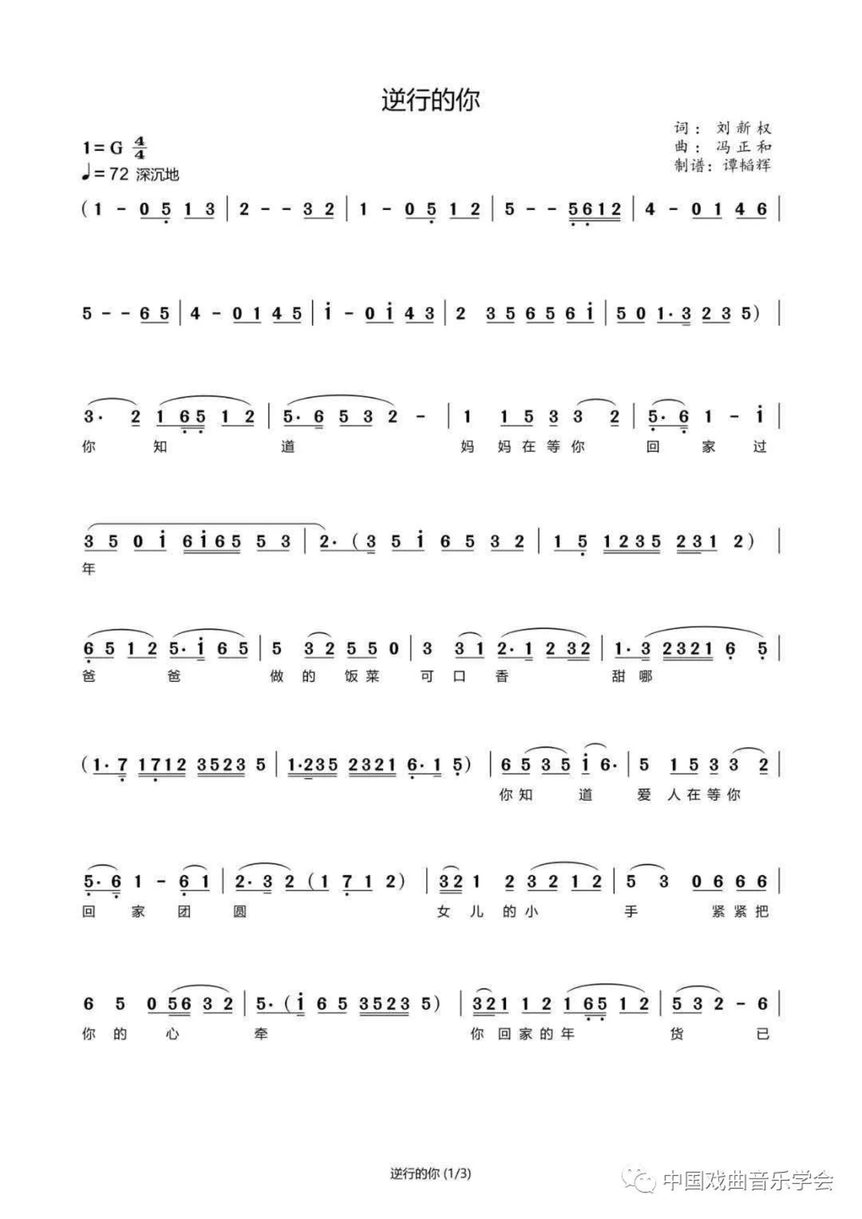 这首花鼓戏歌,以长沙花鼓戏曲调“四季相思”为基调进行创作。第一段采用慢板板式,描写白衣天使们在祥和的节日里依依不舍地与亲人们告别的情景。第二段运用了花鼓戏常用曲调“反手洞腔”,加快了节奏,描写白衣战士们奔赴抗疫前线、毅然决然出征武汉之情。第三段是将花鼓戏曲调“南数板”节奏放缓,句式拉伸,通过歌曲化的旋律,赞扬在抗疫前线的白衣战士们,舍小家、顾大家的奉献精神,歌颂把希望播洒人间的最美逆行者。
