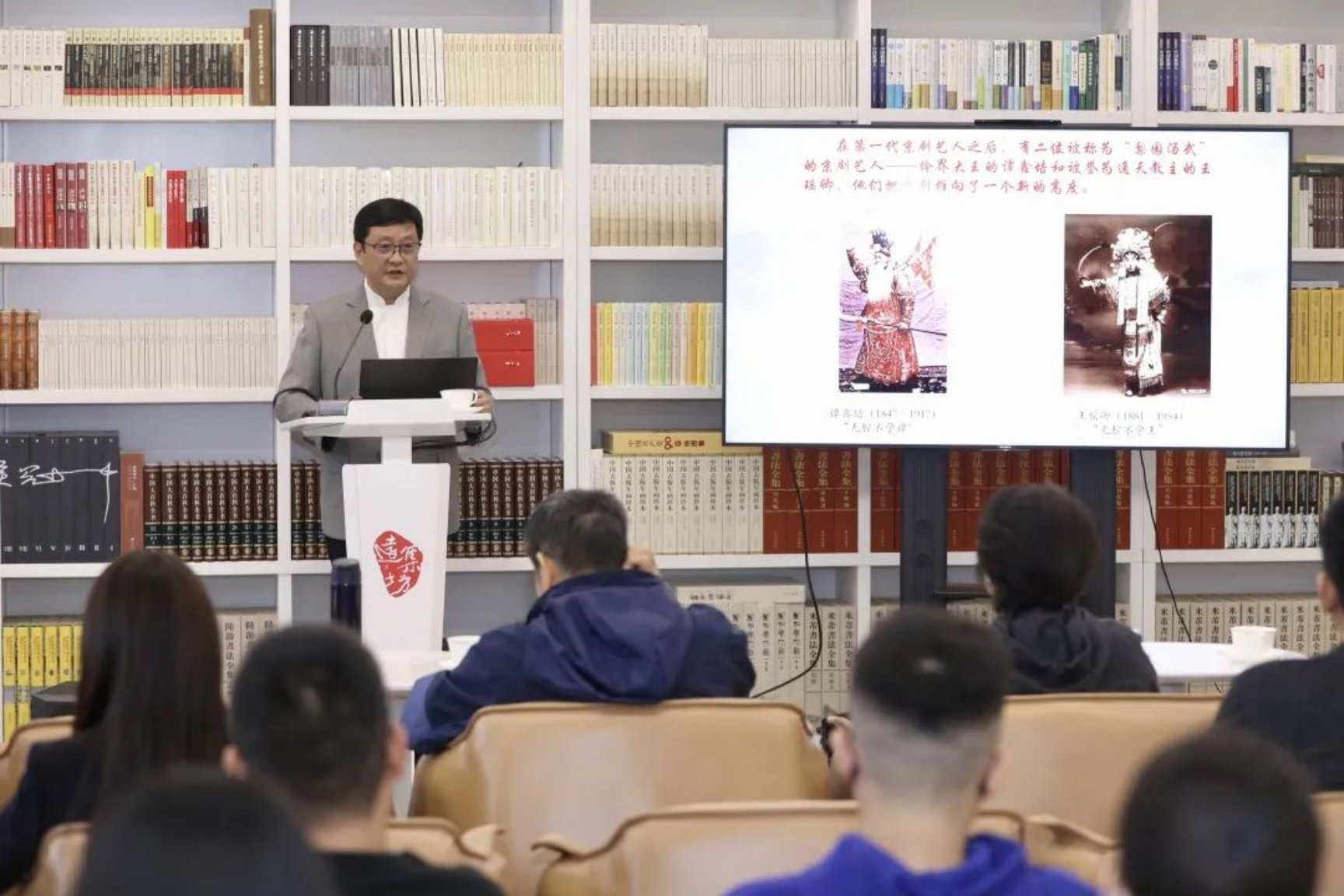 尹晓东讲道,京剧并不是北京的地方戏,而是在北京形成发展起来的一个剧种。京剧诞生的标志性事件就是1790年徽班进京,但这并不是京剧形成的时间,因为当时其声腔还未形成。徽班是京剧的摇篮,很多地方剧种的演员在当时纷纷进入到徽班里唱戏,其中以徽剧的二黄声腔和汉剧的西皮声腔为主,从诸腔杂陈,到徽汉合流,在半个多世纪的时间中逐步化合形成了一个以皮黄为主的全新剧种。