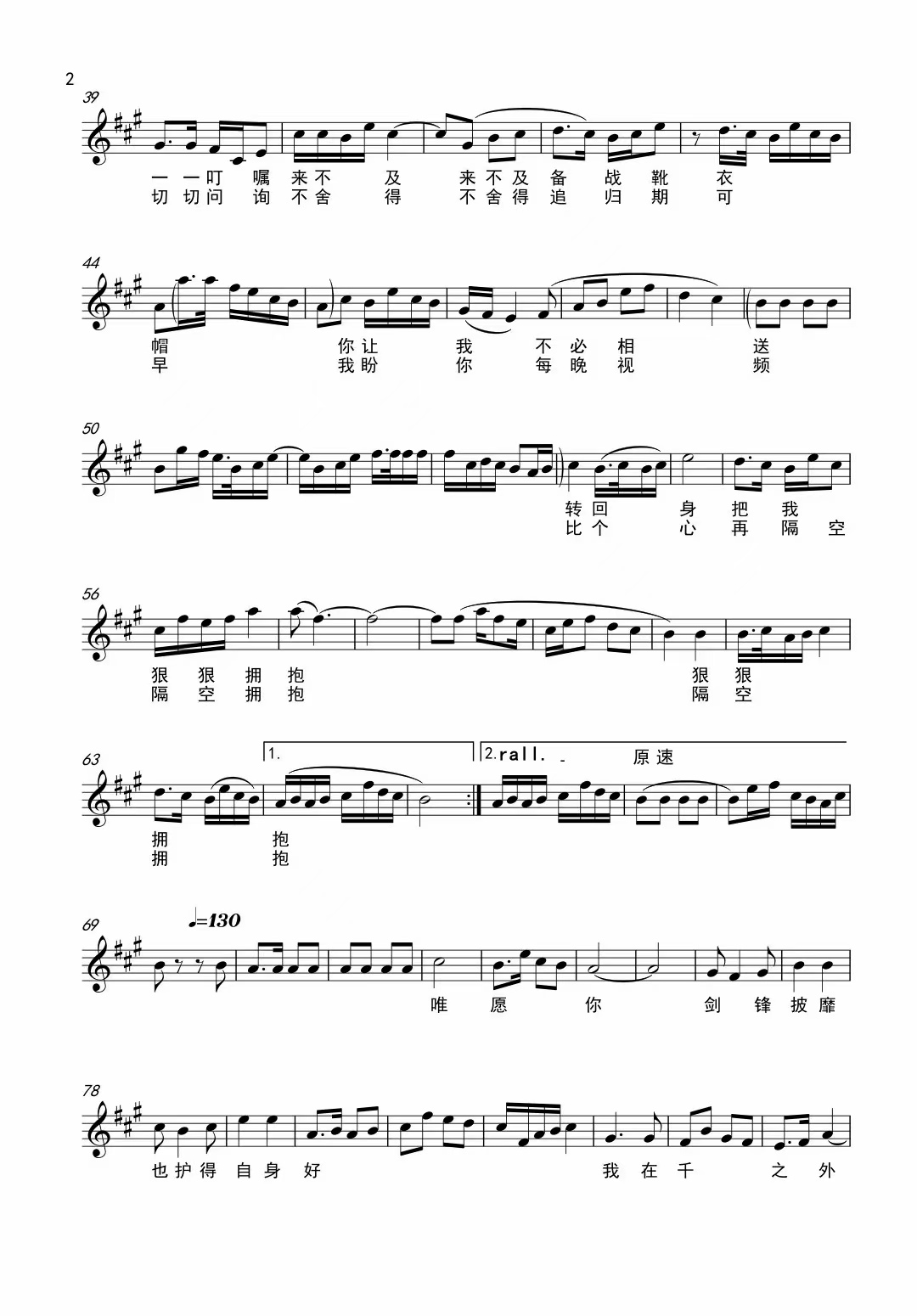 这首京歌运用了京剧反二黄唱腔,前半段采用慢板,以悲壮深沉的唱腔致敬白衣战士舍小家为大家,告别了节日的欢聚和亲人的温暖,义无反顾地奔赴一线面对肆虐的病毒和死亡的威胁,一个拖腔表现出由不舍之情转而向前的决心与斗志。后半段通过“唯愿你剑锋披靡,也护得自身好”反复两遍后接紧打慢唱的演唱形式,表达出亲人的挂念,在结尾处接连两个转调,展现了战“疫”胜利后我们的城市花红柳绿,祖国处处繁荣的景象。