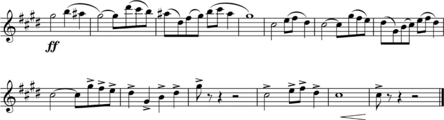 将两个乐句顺序颠倒一下出现,既先是上五度的旋律,然后向下模进再出现在原调性上,伴随着极富感染力的旋律在剧场里回荡,深深地震撼了观众的心,让大家更加深刻地感受到了班昭伟大的一生!
