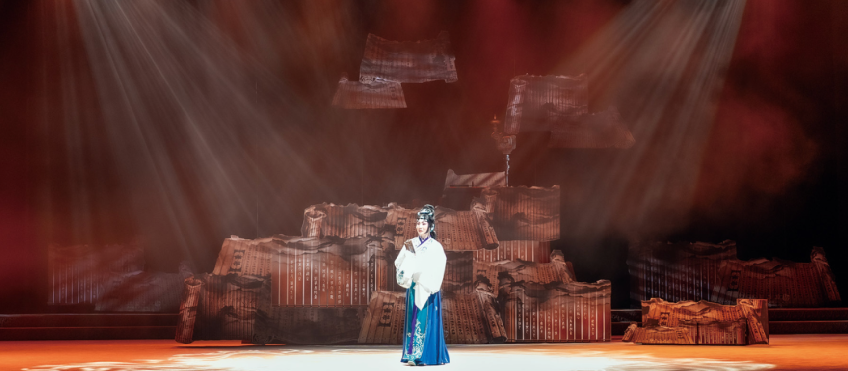 在接到《女史赋》创作任务的初期,我的脑海里其实并没有成型的班昭的音乐形象感觉。我所做的第一步还是去翻阅大量的历史资料,查询有关班昭的事迹与她的经历。然后结合剧本将整个剧的音乐段落做一个比较详细的规划,剧本是采取倒序的方式来描写,在序幕与尾声中都设计的是班昭在晚年时期的形象,然后按照场次分别从班昭十四岁时青春豆蔻年华的活泼形象;继而过渡到她与二师兄成婚后,夫君爱慕虚荣贪恋权力功名的受冷落时期;在兄长病危离世时班昭又毅然接过修编汉书的雄壮、毅然决然的情怀;再到夫君投水自沉以及书稿被烈火焚毁,而她又重拾信心、从头再来继续自己的编撰事业的伟大历程;而后的功成名就的辉煌,以及大师兄的久久陪伴。可以说通过《汉书》的编纂工作,班昭不仅完成了家族使命,更在中国史学发展史上留下了浓墨重彩的一笔。她的成就,为后世女性从事学术研究开辟了先河。