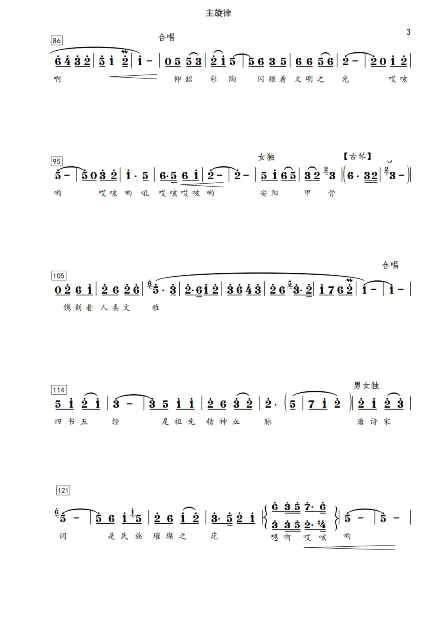 全曲运用无伴奏合唱开篇,赋以富有动力的音乐张扬推动,并用重唱的合唱,对“天下之中,巍巍华夏,宅兹中国,中原老家”给予了浓笔众彩强化和渲染。而后,贾文龙自豪的咏叹出:三皇五帝在此住,诸子百家似云霞;李树建纯正地道的豫西调庄重的描绘出:夏商周皆出河洛、汉唐宋一路繁华;王惠教授大气磅礴的挥毫出:仰韶彩陶闪耀着文明之光;豫剧表演艺术家杨红霞典雅悠扬的述说出:安阳甲骨镌刻着人类文雅。四书五经、唐诗宋词,春秋文化、秦砖汉瓦。字斟腔酌,词曲辉映!豪迈庄严,辉煌腾达!令人叹服折腰!中通古商,粮食居安。一带一路、四海通达!大别山、红旗渠、焦裕禄精神令人神往!生生不息,继往开来的中原儿女,必将创造宏伟巨业。出彩的中原,为祖国锦上添花!全曲庄严豪迈,流畅自然。编钟古琴的洪钟大吕,曲胡和钢琴的中西对话,春潮涌动的间奏催人奋进!交响和合唱的衔接周密严谨。旋律中的自然转调、节奏和击乐的强弱冲撞和比对,洋溢着词曲作者澎湃的创作激情!脍炙人口的中原音韵,在艺术家的精彩演唱中挥发的精密有致。中原出彩,绚丽中华!
